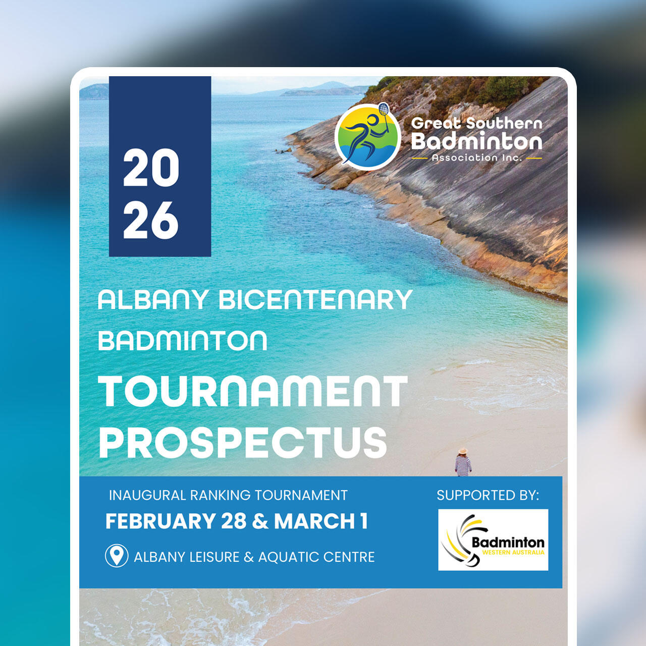Formed in 2022, the Great Southern Badminton Association (GSBA) is committed to growing and revitalising badminton in the Great Southern.Through Albany 2026, GSBA is helping bring local attention and excitement to the sport.